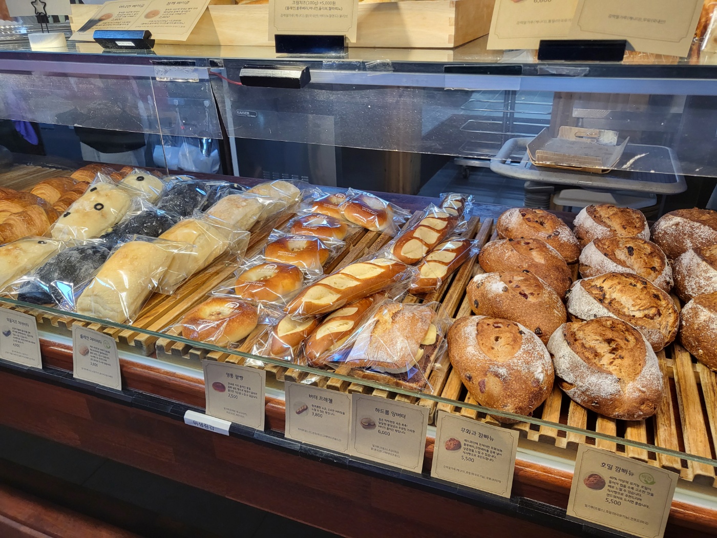 빵 진열대 뒤쪽으로는 베이킹을 하고 있는 주방이