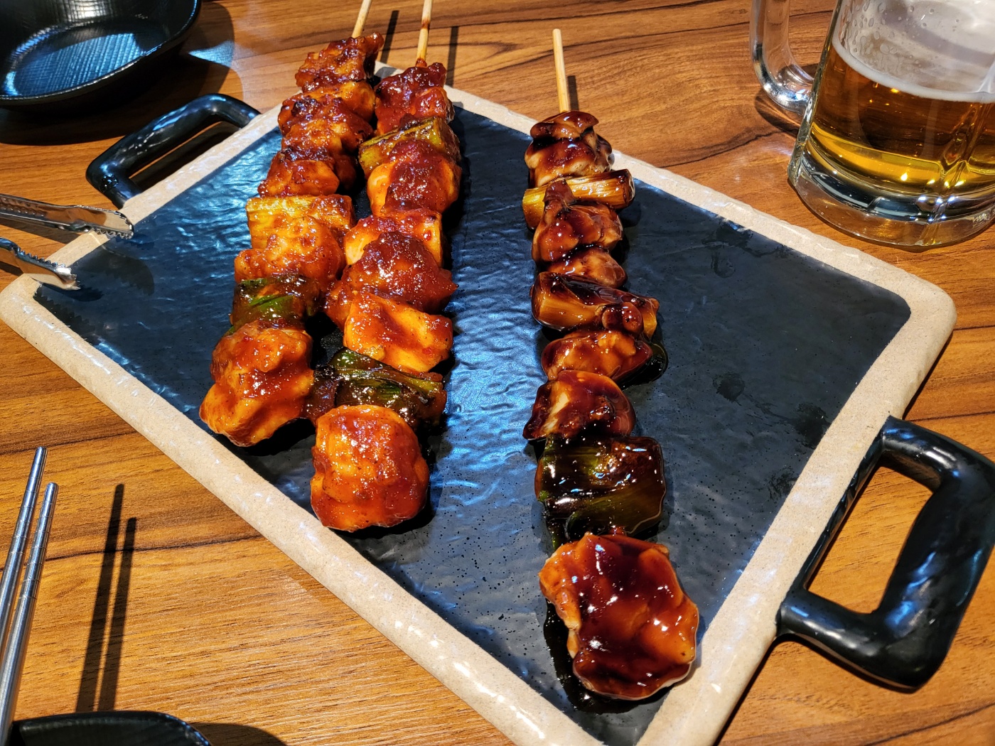 간단하게 파닭꼬치3개, 생맥주, 소주 한병 시켰어요🙌